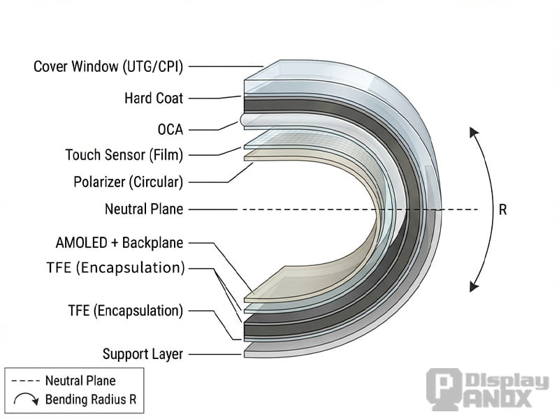 To understand the engineering challenge, we must first define the scope of the "Stack." In the context of flexible displays, the stack is a tightly integrated sandwich comprising the Cover Window, Optically Clear Adhesive (OCA), Touch Sensors/Films, and the OLED Module itself.