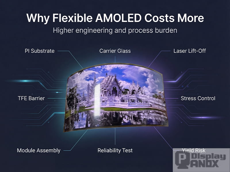 In other words, flexible AMOLED is not just rigid AMOLED with a bendable marketing label. It is a different engineering platform.